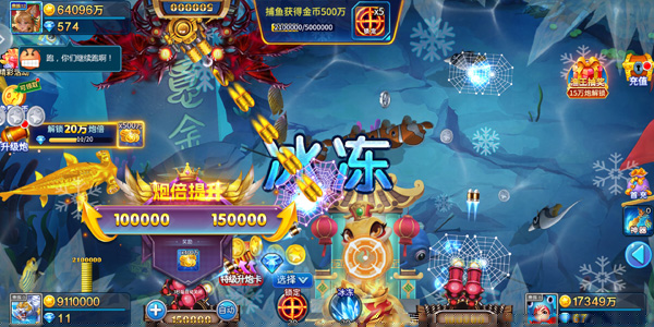 本作最引人注目的亮点在于其颠覆性的视觉表现与爽快感爆棚的爆金系统。游戏采用业界领先的高精度建模技术与动态光影渲染,将海底世界的每一个细节都刻画得栩栩如生,鱼群的游动、水波的荡漾、乃至炮弹划过水面的轨迹都极具真实感。而独创的Boss觉醒系统更是将视觉冲击推向高潮,当金蟾、龙王等传奇生物进入狂暴的觉醒状态时,全屏将绽放出无比华丽的特效,随之而来的便是海量金币如瀑布般喷涌的震撼场面,这种强烈的正反馈极大地满足了玩家的感官需求。游戏打破了传统捕鱼的炮倍限制,提供了高达万倍的炮率选择,让一炮定乾坤的梦想成为可能,扎实的打击感与满屏爆金的视觉回馈相结合,带来了极致的解压与爽快体验。