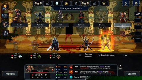 游戏的亮点首先在于其极具深度的双维度战斗系统。除了常规的血量(HP)之外,游戏中独创了士气系统。即使你的怪物军团血量健康,但如果遭到某些勇者组合的针对性打击或特殊技能影响(如恐惧、嘲讽等),士气值可能迅速崩溃,导致防线不攻自破。这要求玩家在布局时不仅要考虑物理防御和伤害输出,还需关注单位的心理承受能力,策略层次更为丰富。资源管理极具挑战性且与玩法紧密融合。黄金、血液、泪水是驱动地下城运转的三种核心货币,分别用于建造、召唤和施法。如何平衡三者获取与消耗是一大难题。商务旅行是获取稀有神器和积累血液、泪水的重要途径,但派出核心怪物出差又会暂时削弱防御力量,这种高风险高回报的抉择无处不在。游戏内所有怪物、陷阱的升级机制设计巧妙,们必须被放置在出战栏位中才能进行升级,而处于休息或不可用状态的单位则无法强化。这迫使玩家必须在战斗轮换与长期成长之间做出精明规划。