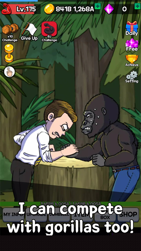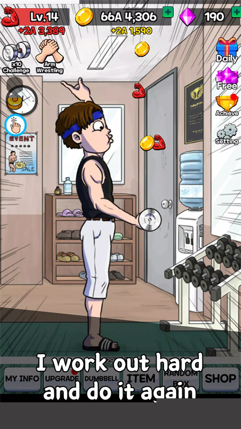 掰手腕大赛的特色鲜明,主要体现在以下几个方面:一是其多样化的游戏模式。游戏提供了丰富的单人闯关旅程,玩家将从新手村起步,一路征战至代表最高荣誉的世界职业联赛,逐级挑战由AI控制的各色对手,每个对手都拥有不同的力量和风格。游戏内置了完善的任务与成就系统,通过完成每日任务和周常挑战,玩家可以获得丰厚的资源奖励,为持续冒险提供动力。更令人兴奋的是,游戏支持多人实时竞技功能,玩家既可以邀请好友进行一场私下的力量对决,也可以匹配全球的玩家,在线上擂台一较高下,体验与人斗其乐无穷的竞技快感。二是其出色的反馈与成长感营造。虽然操作是简单重复的点击,但恰到好处的音效、画面震动以及力量槽的激烈波动,共同营造出爽快的操作手感。尤其是在赢得比赛的瞬间,所带来的成就感非常强烈。游戏的角色动画表现也十分生动,对手失败时的得意表情与玩家角色胜利时的怒吼形成了鲜明对比,极大地增强了比赛的情绪张力。整个成长路径从弱鸡新人到腕力之王的设计,让玩家的数值提升与角色的视觉变化(如肌肉线条)同步反馈,提供了持续不断的正向激励。