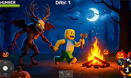 恐怖之夜:丛林生存构建了一个动态而充满恶意的生态系统。游戏的核心矛盾直白而深刻:白昼属于探索与筹备,黑夜则属于逃亡与坚守。玩家扮演一名不幸被困于神秘诅咒丛林的幸存者,必须利用白天有限的时间,探索随机生成的环境,收集木材、草药、燧石等关键资源。真正的挑战始于日落。随着黑暗如潮水般蔓延,环境中潜伏的影兽开始活跃们憎恶光明,会被任何光源吸引,却又在黑暗中变得无比强大。你的营地篝火、手中的火把,是驱散它们、保护自己的唯一屏障。游戏进程摒弃了繁琐的剧情与角色养成,让玩家从第一分钟起就直面生存这一最原始、最紧迫的命题,在资源迅速耗尽的倒计时声中,体验心跳加速的每一秒。