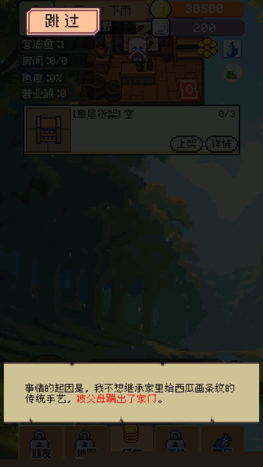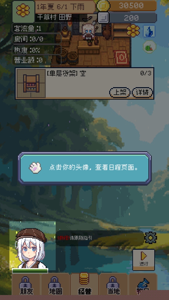 游戏的玩法围绕计划、执行、优化的循环展开。开局阶段,玩家利用免广告福利获取启动资金后,便可跳过剧情,正式踏上商旅。首先需要学习基础的店铺经营,在固定店铺中通过【换货】功能灵活调整货架商品,利用【物品】界面中的能量棒、奶酪等道具提升店铺人气,奠定初期资本。紧真正的核心——长途贸易拉开序幕。在【交易所】中,玩家需时刻关注行情,低价买入特惠商品,并寻找时机高价出售如【蜂蜜】等紧俏物资。规划路线时,必须综合考量货物价值、路程风险、马车容量及护卫实力。在【外出系统】中,制作新物品、前往公会兑换稀有物资、处理随机事件,都是丰富资源储备和提升实力的重要途径。整个游戏过程要求玩家兼具商人的精明、战略家的远见和冒险家的勇气,在不断应对市场波动与旅途危机的过程中,逐步壮大自己的商业版图,最终成为名震大陆的传奇商贾。