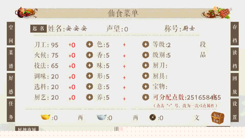 仙者食为道的特色体现在其极为细致和环环相扣的成长与养成体系上。厨艺能力的成长绝非简单的等级提升,而是涵盖了从基础的刀工、火候掌控,到进阶的调味艺术、食材甄选等多个维度的专项修炼,每一项都需要玩家投入精力去打磨。游戏创新性地引入了基于旬制(每十日为一旬)的时间管理模式,要求玩家合理规划每个时间段,是用于闭关修炼提升属性,还是经营餐馆积累资金,或是外出探索收集资源,考验着玩家的策略规划能力。菜肴的评定系统更是独具匠心,采用色、香、味、意、形、体六项中华传统美食标准进行综合评分,这份评分直接关系到剧情中的考核成败与资源获取多寡。游戏的经济系统与烹饪成长形成了完美的良性循环:通过经营自家餐馆赚取资金,用以购买更高级的食材与厨具,从而烹制出更优质的菜肴,吸引更多客源,获得更高声望与收益。