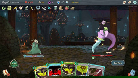 Slay the Spire的特色鲜明而深刻,主要体现在以下几个方面:首先是其深度的策略性回合制战斗。战斗并非简单的数值比拼,而是强调精细的资源管理,包括每回合的能量点、手牌数量以及宝贵的生命值。每一步出牌顺序、每一次路线选择都可能影响整个战局的走向。是动态的地图探索。每层地图都像一张决策网络,提供了通往终点的多条路径,玩家需要权衡利弊,在普通战斗房、强大的精英怪房间、可进行交易的商店、能够休息强化的篝火以及充满未知的问号事件房间之间做出选择。是持续的卡组构筑与优化。胜利后获得新卡牌是强化的途径,而在篝火处删除冗余卡牌以保持卡组精简高效同样至关重要。玩家需要像一位真正的卡牌大师一样,不断调整策略,让卡组围绕核心思路运转。