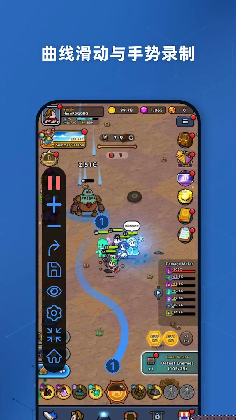 一、 核心动作编排,覆盖全操作场景: 软件允许用户在屏幕上任意位置设置多个点击点或自定义滑动轨迹,并可自由编排触发顺序与循环逻辑。其独有的手势录制功能,能够像录像一样实时记录用户的所有屏幕操作(包括点击、长按、非直线滑动),并生成可一键回放的脚本。对于需要极限手速的场景,如游戏连招或抢购,其同步触发模式能让多个点击动作在同一毫秒内发生,实现爆发性的操作输出。