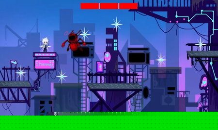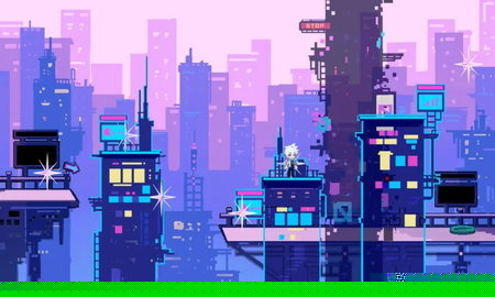 Shimmer最引人注目的亮点,在于其极具颠覆性的核心机制与高度统一的艺术表达。故障触发图层切换机制是游戏灵魂所在。玩家并非通过菜单或技能来切换场景,而是需要主动寻找环境中自然产生的故障点——可能是闪烁的霓虹招牌、一段扭曲的墙体纹理或一片波动的数据流。与之互动,整个世界便会如同信号不良的电视屏幕般剧烈抖动、撕裂,并在瞬间重组为另一个图层的样貌。前一秒还是坚实墙壁的地方,下一秒可能变为可通行的平台或致命的深渊。这种切换不仅是视觉上的震撼转变,更彻底改变了该区域的物理规则、敌人状态与可交互元素,使得解谜过程充满了恍然大悟的惊喜与策略深度。游戏的美术风格堪称一绝,采用了复古的赛博朋克手绘风,用高饱和度的霓虹色彩(粉、紫、蓝、绿)勾勒出夜幕下无尽的数字都市轮廓,大量运用像素错位、色彩分离、画面抖动等故障艺术特效,将BUG从程序缺陷升华为一种核心美学语言。视觉与玩法在此达成了完美的共生,让每一次图层切换都成为一场炫目的视觉盛宴。