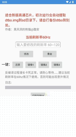 黑风刷新率修改器的特色在于其深度、安全与全面。其一提供极高的自定义自由度,不仅支持常见的60Hz、120Hz,更允许用户设定如90Hz、144Hz等非标准刷新率,以适应不同屏幕素质和个人感知的细微差异。其二,内置智能场景识别功能,可自动根据游戏内的画面复杂度(如团战爆炸特效与平静赶路场景)动态微调帧率上限,在流畅与能效间取得最佳平衡。其三,工具具备完善的日志记录与安全回滚机制,所有参数修改均有迹可循,一旦出现兼容性问题,可一键恢复到之前的稳定状态,保障了设备安全。其四支持多游戏独立配置,用户可以为王者荣耀、原神、和平精英等不同游戏创建并保存独立的帧率、分辨率方案,切换游戏时配置自动生效,管理极其便捷。