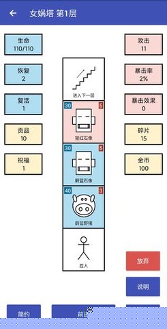 女娲捏人拥有诸多令人称道的特色设计,共同支撑起其丰富的可玩性。其一,是永久成长与单局策略的完美融合。击败魔物获得的经验不仅能强化当次冒险的角色,更能永久提升女娲的手艺等级。即使某次攀登失败,你的下一次创造也会站在更高的起点上,这种积累感极大地缓解了失败挫折,并鼓励持续游玩。其二,是深度探索的奖励机制。高塔中散落着神秘的造化碎片,集齐特定组合便能解锁对角色基础能力的永久性增益,激励玩家不放过任何一个角落。其三,是独具匠心的热度系统。当玩家携带一套已成型的强大祝福组合通关后,可以选择开启更高热度的挑战。在高热度下,敌人与首领的强度将倍增,但相应的奖励也更为丰厚,这为追求极限的玩家提供了无尽的挑战空间。其四,是纯粹的文字沉浸体验。所有战斗、成长与剧情推进完全依托于精炼而富有张力的文字描述,迫使玩家运用想象力填补画面,将全部精力聚焦于战术规划本身,营造出独一无二的沉浸感。
