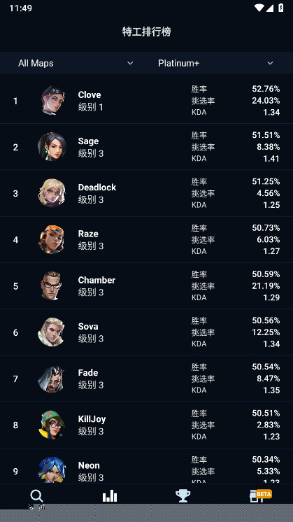 针对玩家,尤其是初学者面临的该练哪个特工?、这张地图该怎么打?的困惑,App内置了基于海量对局数据的全球统计分析模块。这里提供实时更新的全球特工胜率、选取率、地图胜率等排行榜,用客观数据揭示当前版本的强势英雄和战术倾向,整合了社区精华的地图教学,以图文或视频形式展示各种关键点位的标准烟墙封堵位置、侦查箭矢或哨戒炮的架设角度、以及技能组合的精准投掷方法。这相当于为玩家配备了一位随时在线的数据教练,帮助其快速跟上版本节奏,构建科学的英雄池和地图理解。