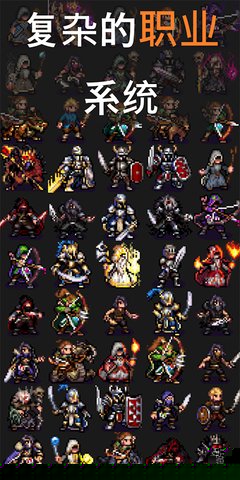本作的亮点首先体现在其极其丰富的角色养成系统上。游戏为玩家提供了超过七十种各具特色的职业选择,从基础的战士、法师、游侠,到进阶的龙骑士、元素使、暗影刺客等,每一种职业都拥有独立的技能树与成长路线。你招募的每一位冒险者都拥有近乎无限的发展可能性,你可以根据其先天属性与你的战术偏好,为其规划独一无二的成长道路。游戏的战斗系统采用了轻松而不失策略深度的全自动回合制模式。玩家无需在战斗中频繁进行微观操作,而是将策略重心前置,在于战前的队伍阵容搭配、装备配置与技能选择。一旦冒险者踏入地牢,他们将根据你的预设和战场形势自主战斗,这种设计既保留了策略博弈的乐趣,又极大地解放了玩家的操作负担,非常适合利用碎片时间体验。
