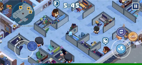 本作的亮点首先体现在其极具创意的核心矛盾设定上。清洁与破坏这一对天然反义词,在凯尔身上达成了戏剧性的统一。玩家需要在维持环境整洁(游戏主要目标)和抑制破坏冲动(生存必要条件)之间找到精妙的平衡点,这种内在张力让每一次简单的擦拭或清扫都充满了策略深度。游戏关卡设计充满了灵动的即兴喜剧效果,办公室的布局并非一成不变,随机发生的突发事件——突然召开的午夜视频会议、梦游的同事、或是自己乱跑的自动扫地机器人——都会打乱玩家的最佳计划,要求玩家即时调整策略,从而产生无数令人啼笑皆非的独特游戏时刻。多达数十位性格鲜明、拥有独立行为逻辑的NPC同事,构成了一个鲜活的微型社会。从喋喋不休的营销经理到神神秘秘的IT专员,他们的存在让每一次潜行都成为一次独特的社交(或反社交)冒险。