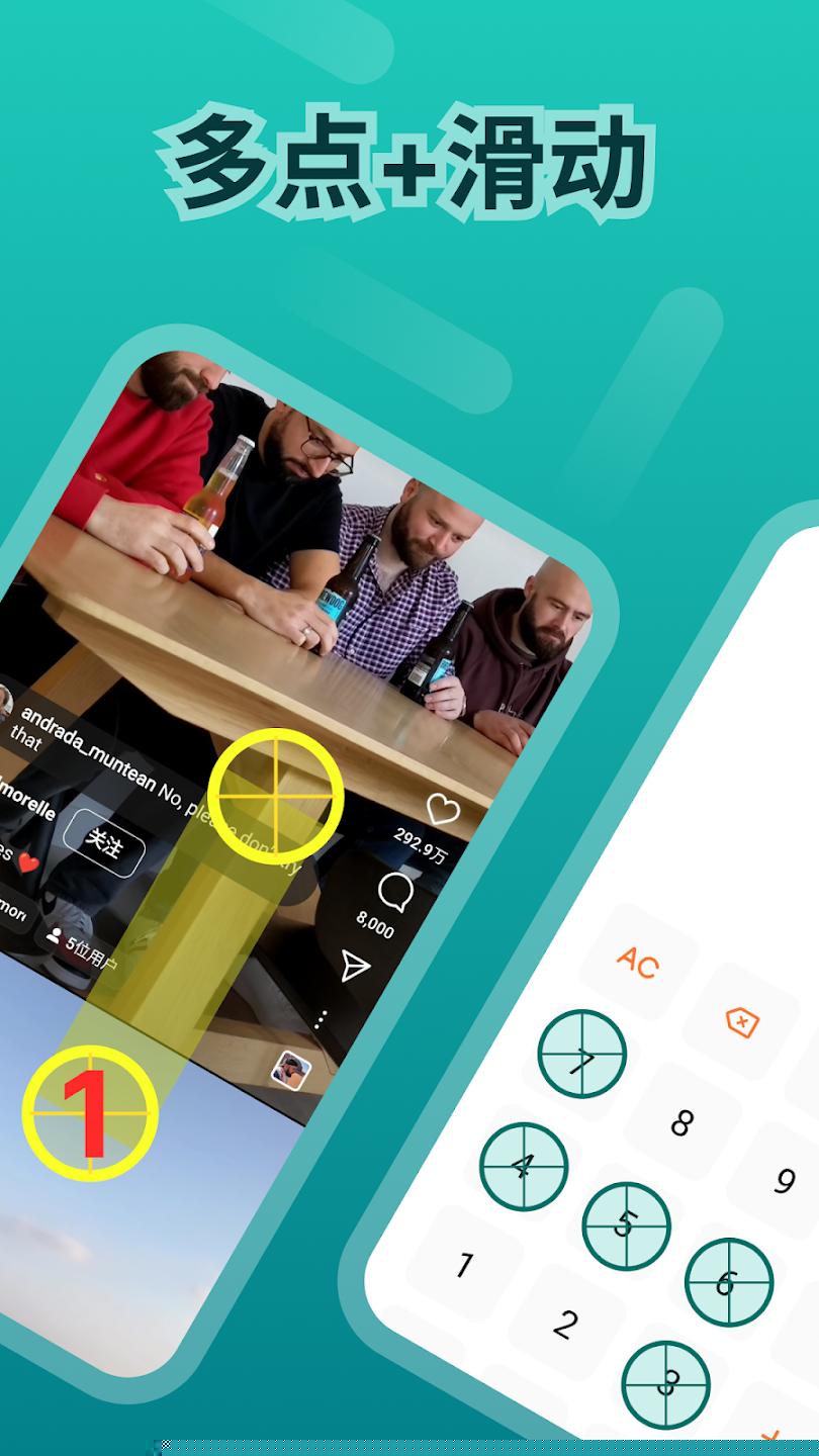 1. 复合手势模拟,构建复杂操作流:软件的核心功能之一是能够模拟真实手指在屏幕上的各种交互,不仅仅支持单点高频连击,更能实现多点循环点击,用户可以在屏幕上设定多个坐标点,并自定义其触发顺序(A→B→C→A循环),适用于游戏中的多位置采集或应用切换,还支持线性滑动、曲线滑动以及长按滑动,用户可以自由绘制滑动轨迹。更强大的是,用户可以将点击、长按、滑动等多种基础手势自由组合,串联成一套完整的自动化操作流程,从而模拟出真人才能完成的复杂交互行为,如游戏中的连招释放或应用内的特定操作流程。