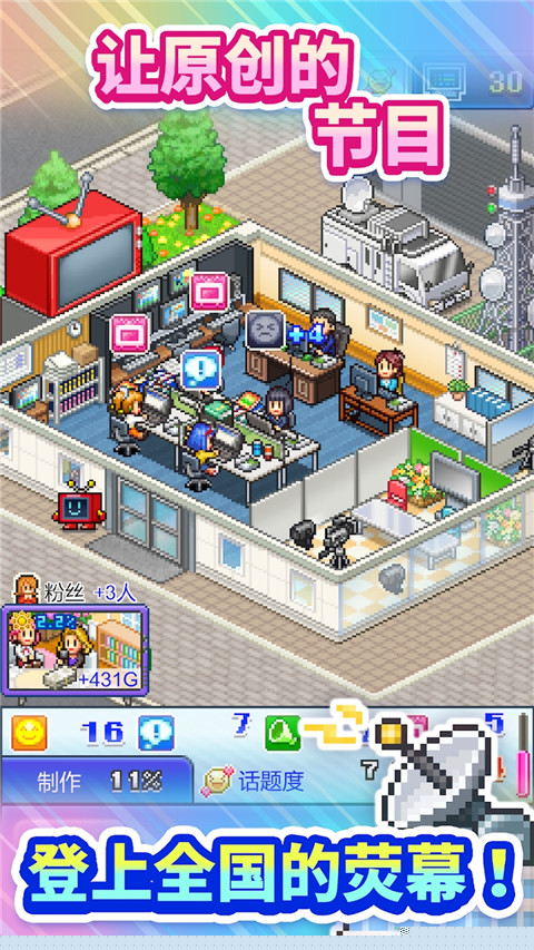 在数字娱乐的浪潮中,有一类游戏始终以其独特的魅力和深度吸引着无数玩家,那就是模拟经营类游戏。而提到这个领域,开罗游戏(Kairosoft)无疑是一颗璀璨的明星。其作品以精致的像素画风、丰富的经营要素和轻松上手的玩法著称,为玩家构建了一个又一个令人着迷的微观世界。今天,我们将目光聚焦于开罗旗下的一款经典之作——开拍电视制作物语(TV Studio Story)也被许多玩家亲切地称为电视演播室物语。这款游戏将带领你踏入光鲜亮丽又充满挑战的电视行业,从零开始,亲手打造属于你的传媒帝国,体验从节目策划到引爆收视的全过程。