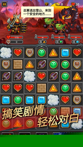 午餐骑士是一款以策略消除为核心驱动力的角色扮演手游。游戏背景设定在一个充满奇幻色彩的卡通世界,玩家将扮演一位临危受命的午餐骑士,为了守护王国的安宁与美食,踏上挑战各路怪物的征途。与传统RPG不同,本作的战斗完全依托于一个动态的消除棋盘。棋盘上布满了代表不同攻击属性(如火焰、寒冰、自然等)的元素宝石,以及拥有特殊效果的图标。玩家通过手指滑动连接三个或以上相邻的同色元素进行消除,每一次成功的消除都会指令骑士对敌人发动一次相应属性的攻击,或是为自身添加增益状态。这种设计将抽象的回合制指令转化为直观的即时操作反馈,极大地增强了战斗的参与感和节奏感。游戏进程由一系列精心设计的关卡推动,每个关卡都有明确的胜利条件,如击败所有敌人、收集特定物品或在限定步数内达成目标等,确保了游戏目标的多样性和挑战的层次感。