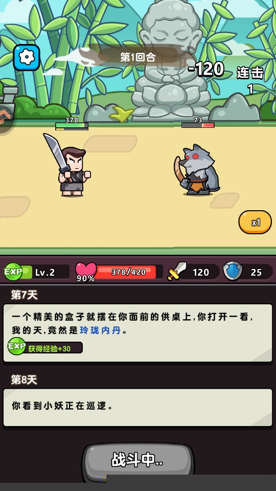 游戏的玩法流程清晰且富有节奏感。玩家在注册登录后,即可从英雄大厅选择心仪的宝贝开始冒险。核心进程以天为单位推进:点击进入下一天,便会触发随机的游戏事件,这些事件可能是一次宝贵的免费升级机会,一次商人拜访,一个需要抉择的剧情分支,或是一场突如其来的遭遇战。当升级时刻来临,玩家将从三个随机技能中选择其一,这是塑造本局战斗风格的关键。遇到战斗事件时,游戏给予了挑战或离开的选择权,这需要玩家根据当前自身实力和状态进行风险评估。进入战斗后,角色会以自动回合制的方式与成群怪物交锋,玩家此时可以观察技能联动的效果,为下一轮决策积累信息。战斗胜利后获得的资源,可用于在局内强化角色属性,或是在局外解锁永久性增强,为下一次走得更远打下基础。整个流程形成了决策-战斗-收获-再决策的紧密闭环,让玩家在轻松休闲的表象下,持续进行着深度的策略思考。