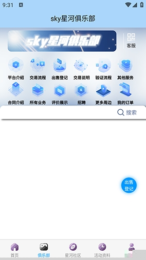 3、其次在【俱乐部】中玩家可进行账号交易,可以购买到更多游戏周边。如图所示。