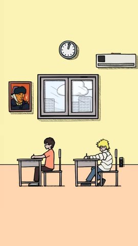 1、第九关: 第十关: 第六关: 第四关: 从第六关开始笔者就觉得有点复杂了,前后两个人一个穿短袖一个穿棉袄赤果果的不正常,所以要先用遥控器把空调换成制热,让他脱掉棉袄,再从空调上拿下火柴从画里面引火点燃棉袄,从而使学生脱下短袖,露出小纸条。