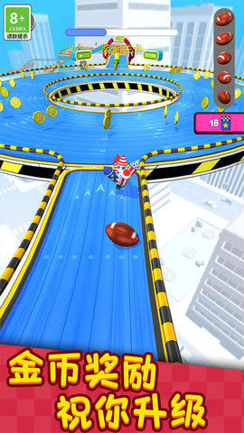 2、游戏中还设有金币系统,玩家可以收集道路上的金币来解锁更多的小球皮肤。
