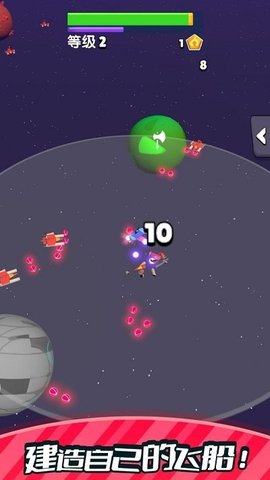 2、玩家可以在游戏中看到许多道具和武器,通过消灭所有对手来升级自己的飞船,并获得更多的道具来建造基地。