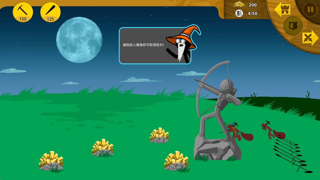 3、通过训练火柴人士兵和雕像,玩家可以保卫领土,拯救家园。