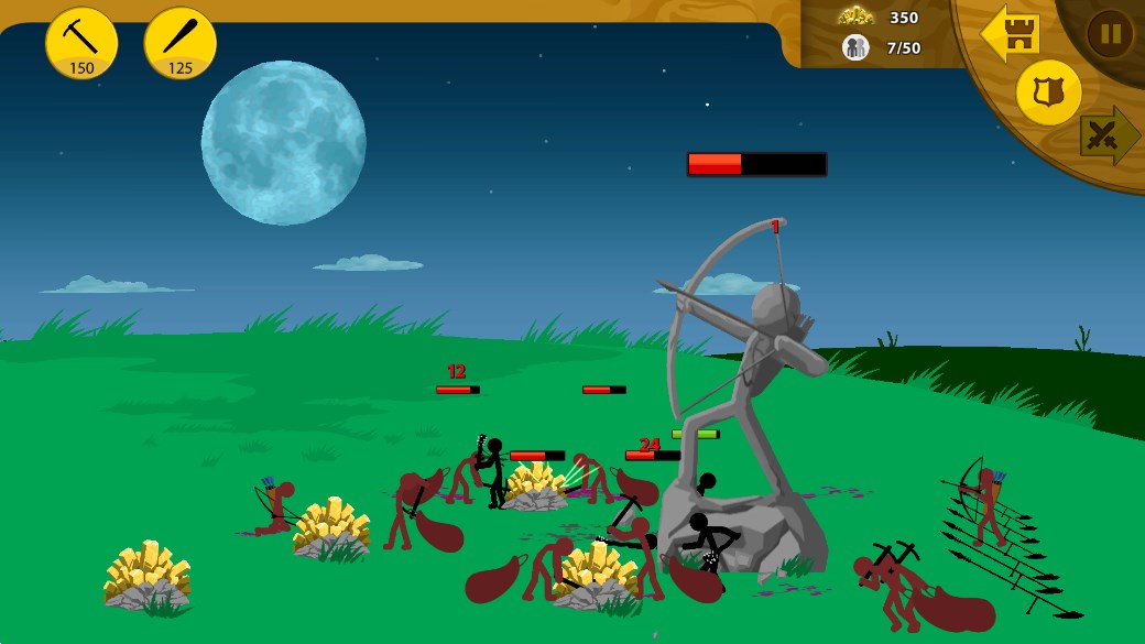 4、玩家可以通过训练火柴人士兵和雕像,使自己的战队变得更加强大。