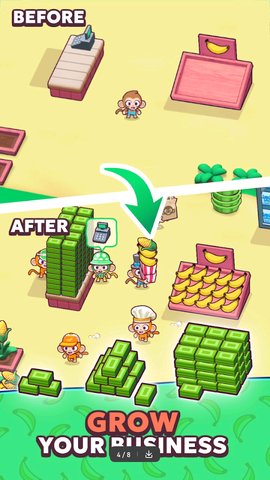 3、准备好在猴子超市中开启你的经营冒险了吗建设你的超市帝国,赢得繁荣和成功吧。