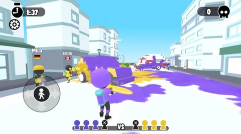 2、游戏的目标是不断向地面喷射颜料,最终谁的占地面积最大,谁就是胜利者。