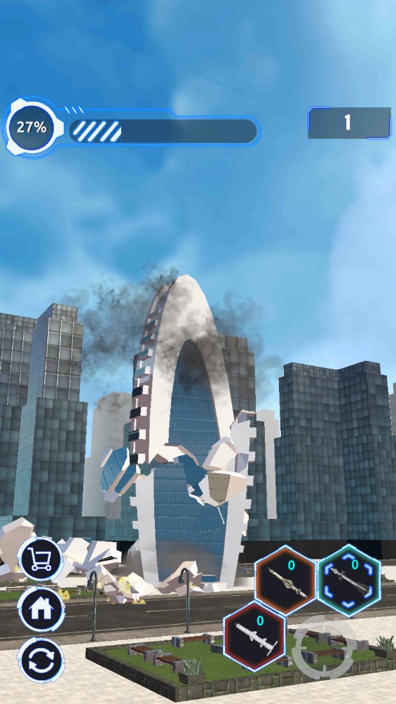 2、玩家可以在游戏中尽情地摧毁建筑物,体验到拆迁的酸爽和痛快。