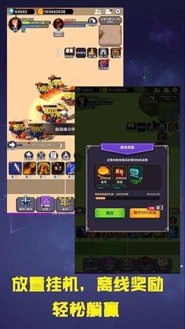 2、此外游戏还支持肝和趟两种玩法,玩家可以选择挂机或离线奖励的方式轻松变强。