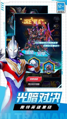 4、玩家可以解锁各种属性各异的英雄,改装自己的奥特曼,参与到炫酷的机甲战斗中。