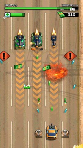 3、此外游戏中还会有火箭袭来的警示,通过大大的感叹号提醒玩家,只要留意感叹号,就能够躲避火箭的攻击。