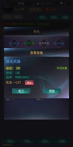 3、十八层地狱小怪掉落对应的1-4阶装备,boss掉落1-7阶装备,打boss的门票靠分解对应层数的装备获取,不是说装备阶数越高属性就一定高,还要看装备的品质(如果背包装备确实多的话可以从角色装备栏里点击更换,会显示背包中装备的属性)。