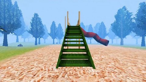 3、森林中有一个奇怪的滑梯,主要的游戏操作就是攀爬楼梯。