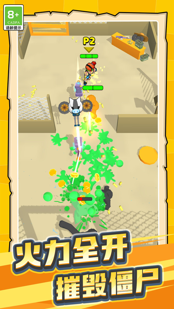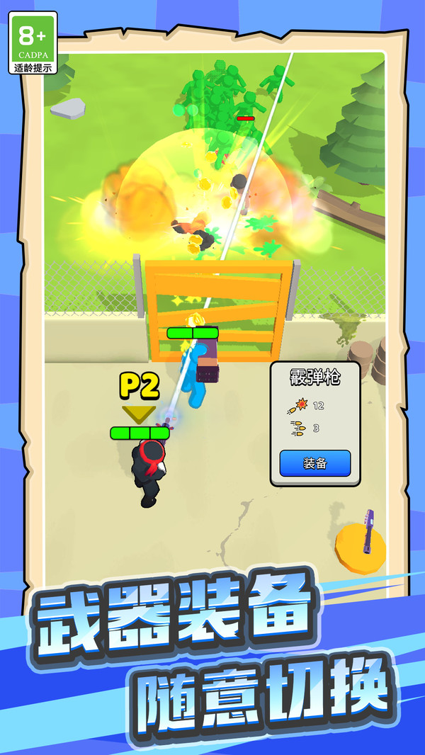 4、在勇者吃鸡大作战游戏官方版中,玩家可以通过控制小蓝人使用枪支快速摧毁进入范围圈的僵尸团体。