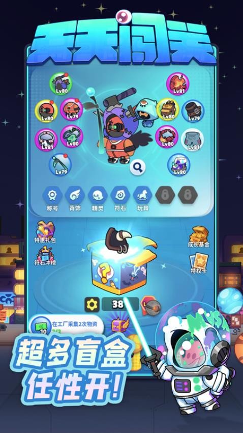 3、天天闯关还提供了无限开盲盒的机会,玩家可以通过冒险解锁各种对战,获取更多的资源力。