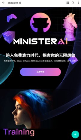 4、注册一个MinisterAI账户,开始你的绘画之旅吧。