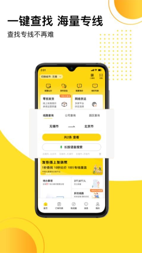 1、发货帮app提供线上交易,用户可以在平台上查看货物订单报价,并一键查找海量专线。