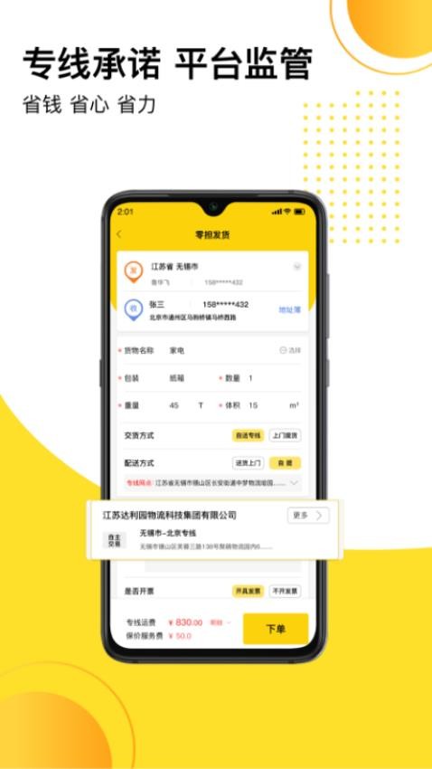 2、平台对资金进行安全监管和担保服务,用户可以根据自己的需求在海量的专线中进行选择。