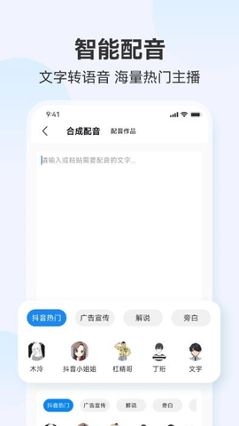 4、另外用户还可以输入文字进行配音,可以选择各种风格的语音,给用户带来了非常多样的选择,增强了应用的体验感。