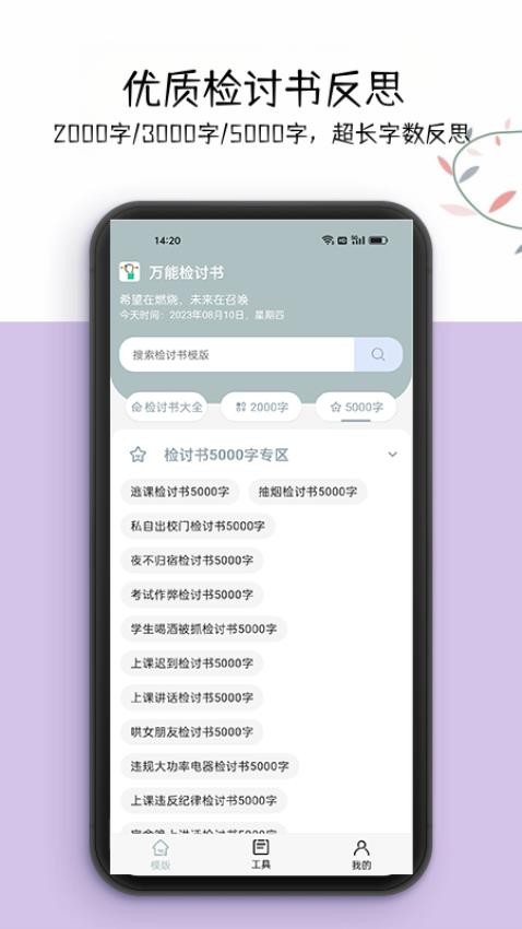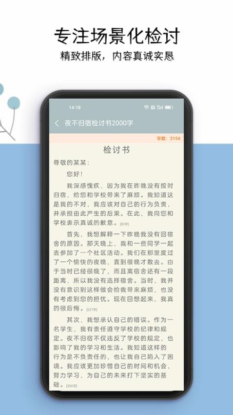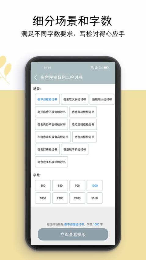1、软件不仅提供检讨书模板,还满足用户对于检讨书字数和场景的需求。