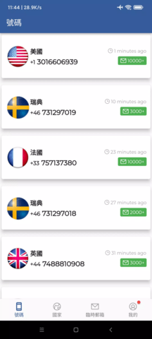 3、当用户无法使用自己的手机时,可以使用这个应用创建临时号码,以便接收验证码。