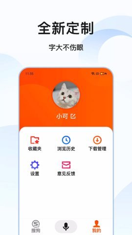 1、搜狗搜索亲情版App专为老人研发,页面设计更加简单,字体和图标都进行了加大的设置,让老人能够清楚地看到内容。
