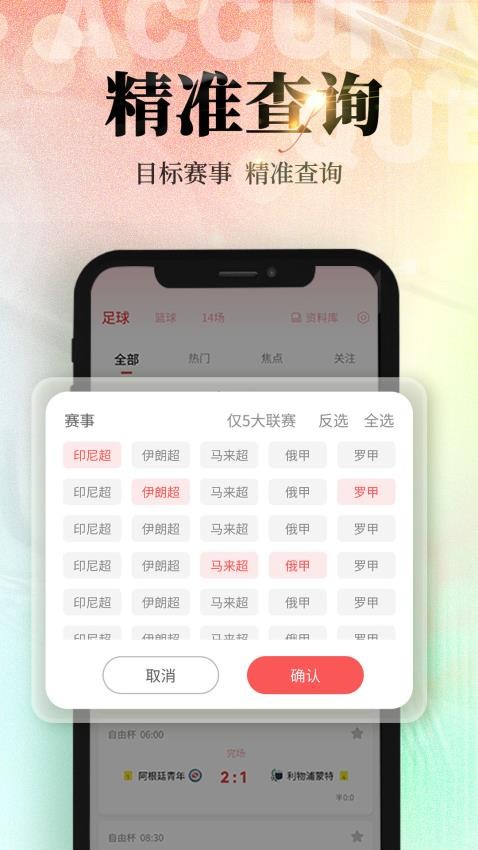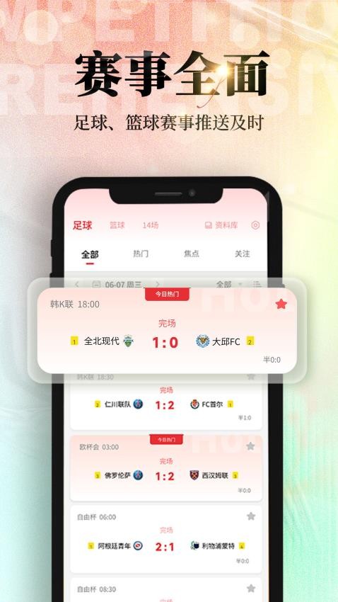 4、平台支持用户在线精准查询喜欢的赛事,提供了关于球赛的比分数据,方便用户轻松查看。