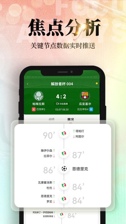 3、平台会实时推送赛事的焦点数据,让用户及时了解比赛情况。