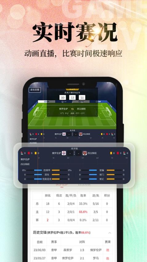 1、用户可以精准查询喜欢的赛事动态走势,让用户在线清晰观看,并关注比赛的比分结果。