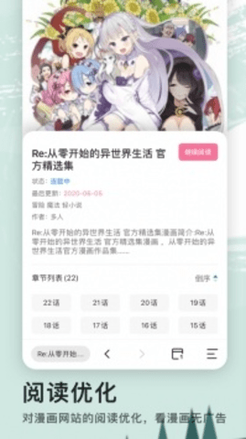 3、它提供了简洁清爽的漫画阅读页面,用户可以在原网页模式和阅读优化模式之间自由切换。