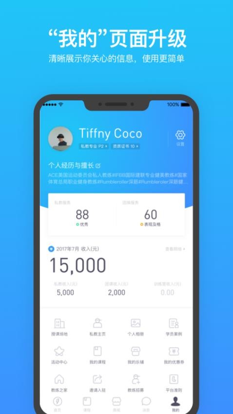 4、它不仅能够帮助教练进行日程管理和与学员进行互动交流,还可以提供课程日历和收入明细的查看功能。