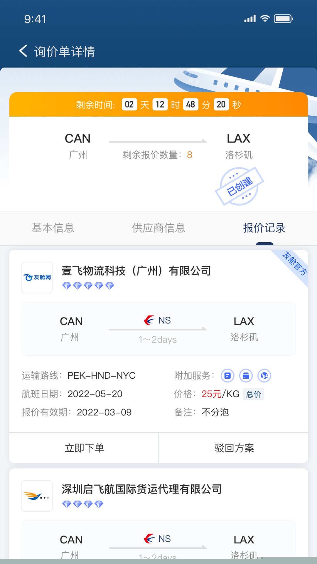 1. 一键询价:用户只需输入始发港和目的港,友舱网便能迅速从百家供应商中获取实时报价,帮助用户快速做出决策,节省时间和成本。