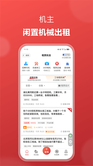基于地理位置与设备类型,实现工程机械租赁需求与供给方的即时、精准对接。