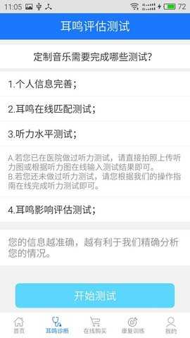 1. 自助式精准耳鸣测评: 对于许多初次接触耳鸣管理的用户而言,准确描述自己的耳鸣状况是首要难题。耳鸣小助手内置了科学、易用的自助测评模块。用户只需在安静环境下,通过简单的交互操作,即可自助完成对自身耳鸣的频率(音调高低)、响度(声音大小)以及类型(如蝉鸣、电流声等)的初步量化评估。这一功能极大地降低了专业评估的门槛,帮助用户从模糊的主观感受转向相对客观的数据描述,为后续的个性化方案生成奠定了坚实的数据基础。