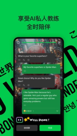 2. 高精度沉浸式听说训练:针对哑巴英语和中式发音两大痛点,软件配备了行业领先的语音识别与评分引擎。在口语练习中,无论是跟读单词、句子,还是参与虚拟情景对话,系统都能实现毫秒级的反馈。它能精准定位用户发音在音素、重音、连读、语调等方面的细微偏差,并用直观的波形图或分数给出评价,提供标准发音示范和针对性的纠音指导。其情景对话模块模拟了从机场值机、酒店入住到商务谈判、学术讨论等上百种真实场景,AI对话伙伴能进行有逻辑的、多轮次的互动,迫使学习者组织语言进行即时回应,极大强化了语言的实际应用能力和临场反应能力,解决了不敢说、说不对、用不上的问题。